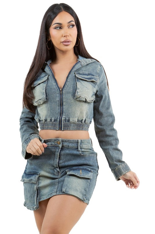 FASHION DENIM TWO PIECE SKIRT SET