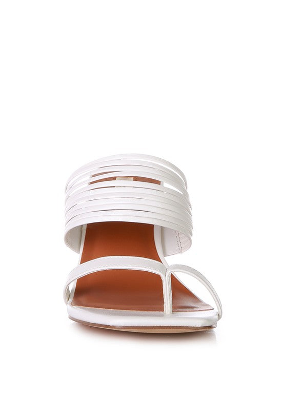 With bangle strap detailing and light cushioning for comfort, these mid-heel block sandals are here to make a statement wherever you walk! The sandals have a toe ring detail and thin faux leather straps making them look extra gorgeous on your feet.