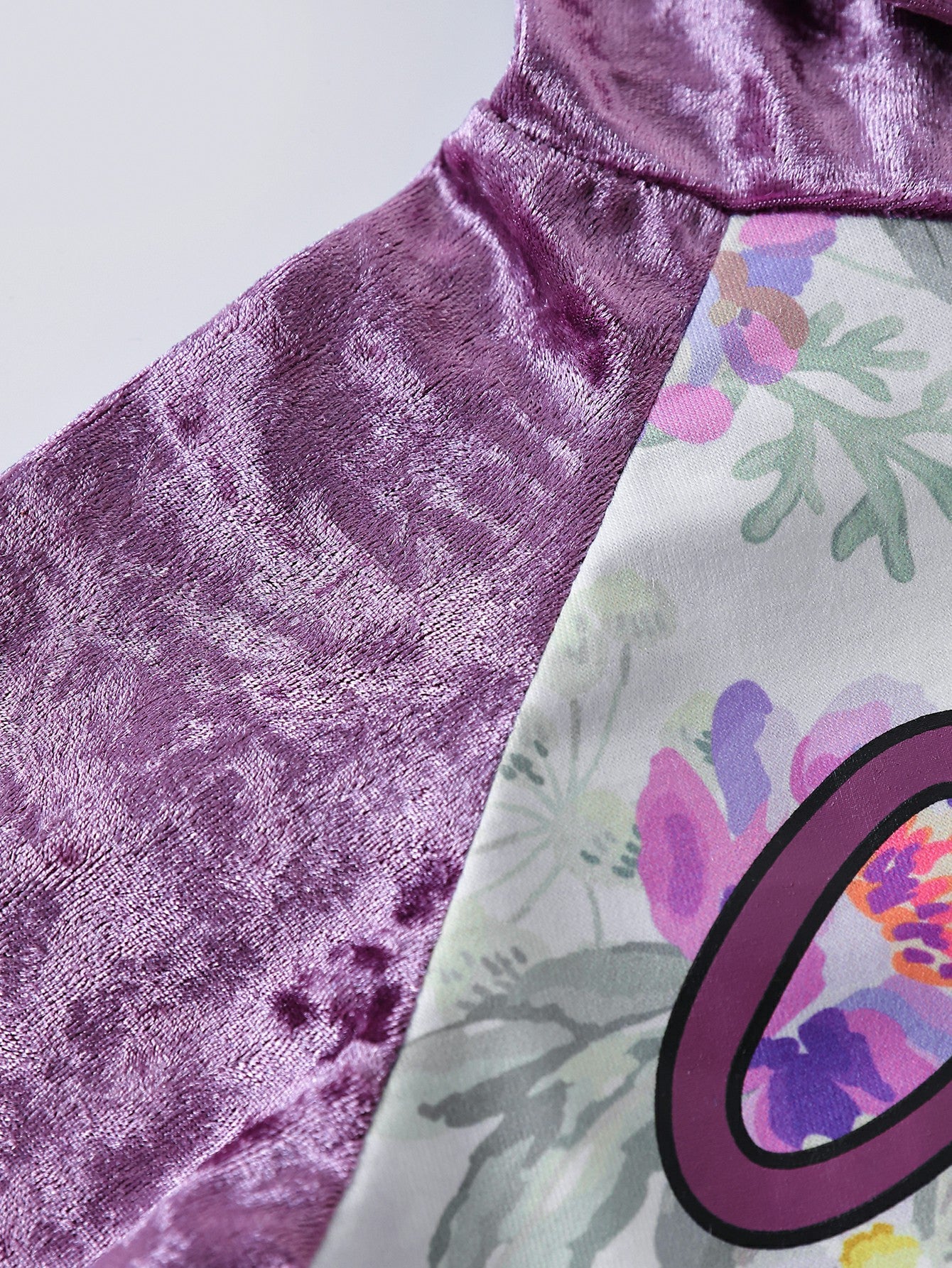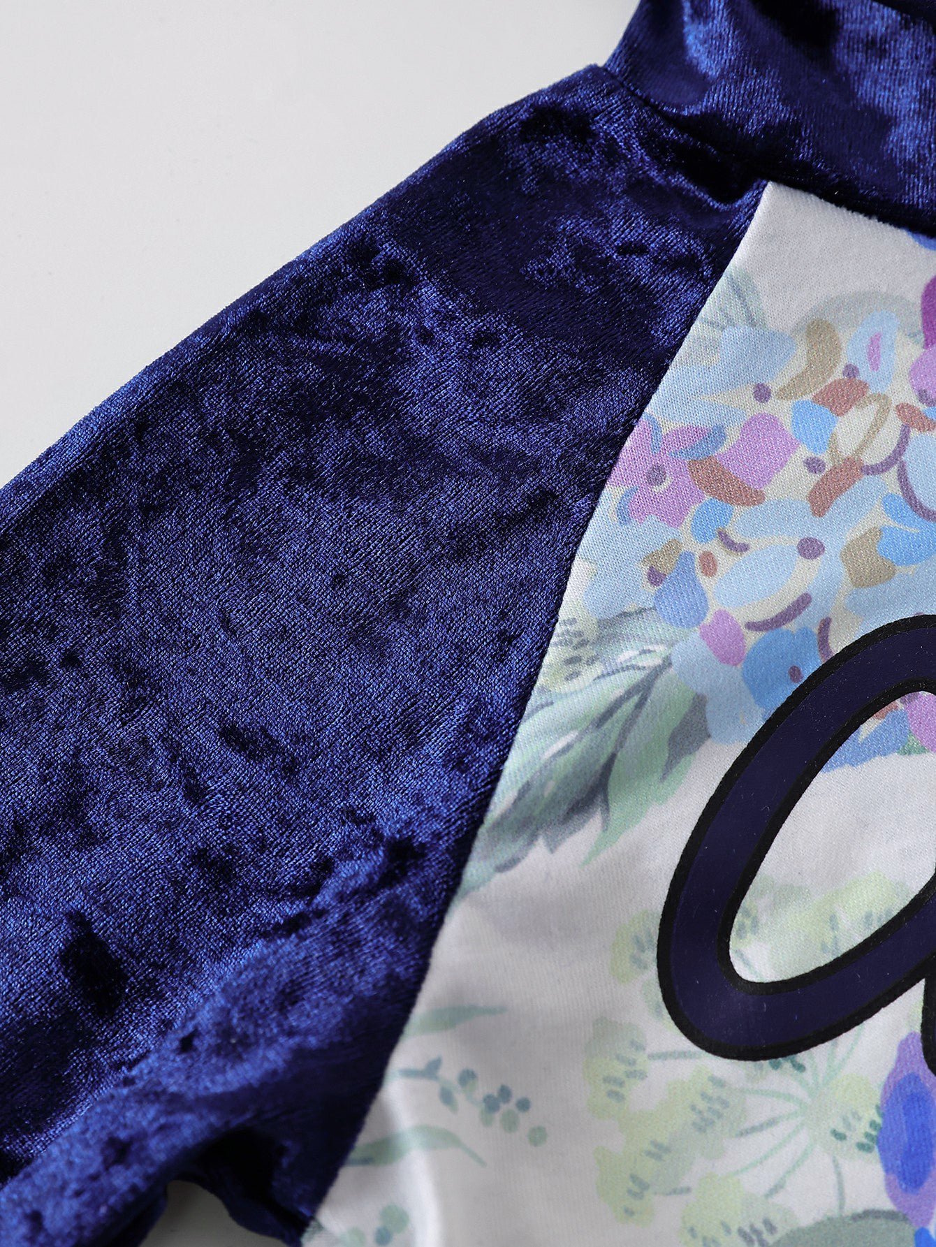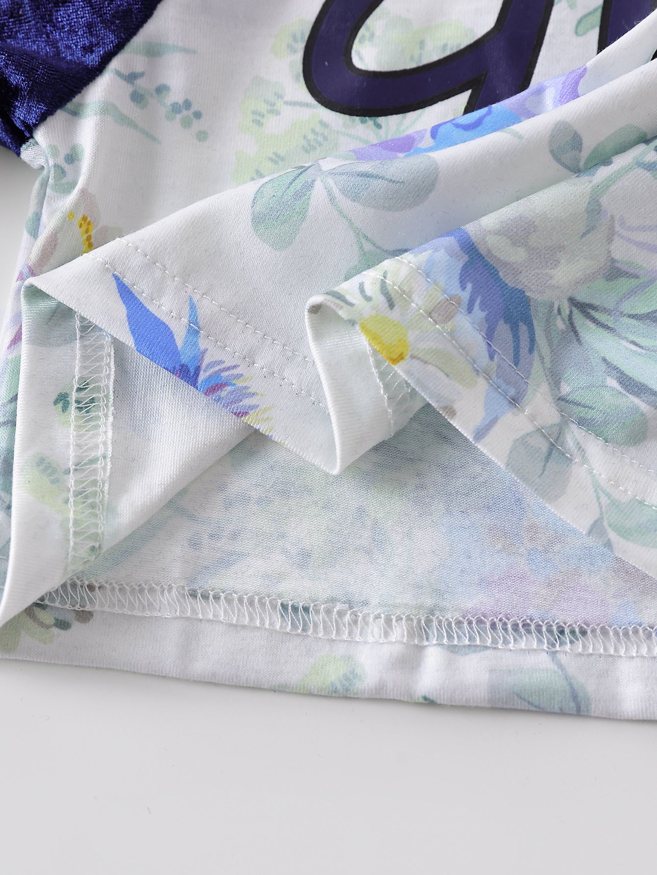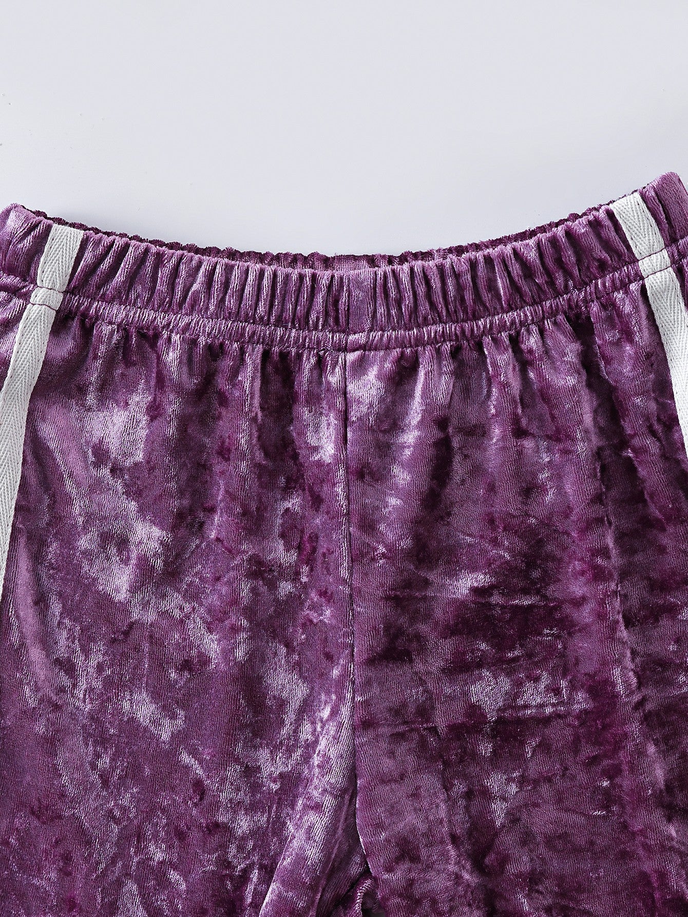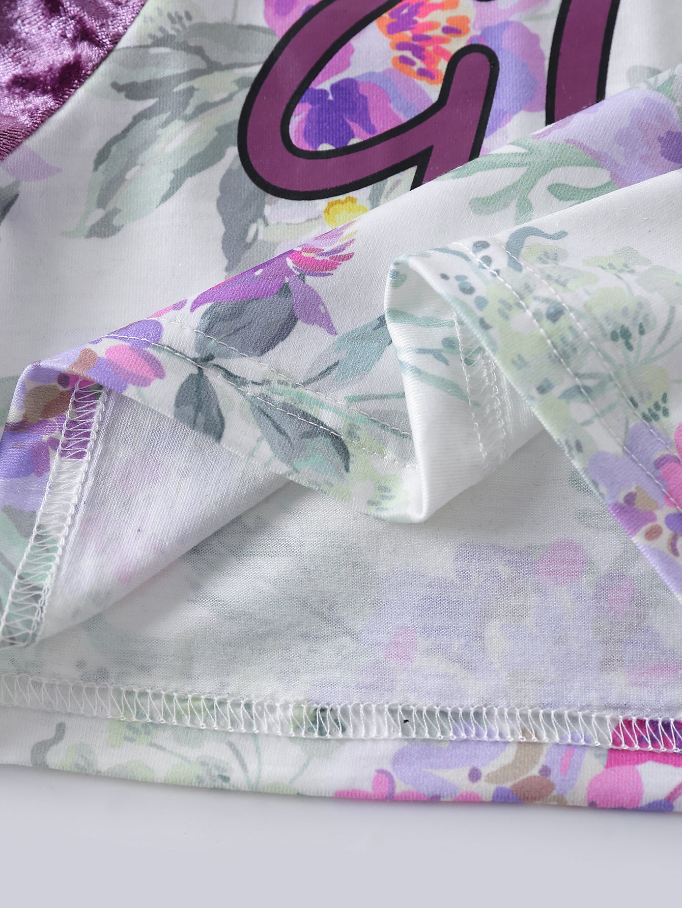 Girls Floral Crushed Velvet Hoodie and Side Stripe Pants Set