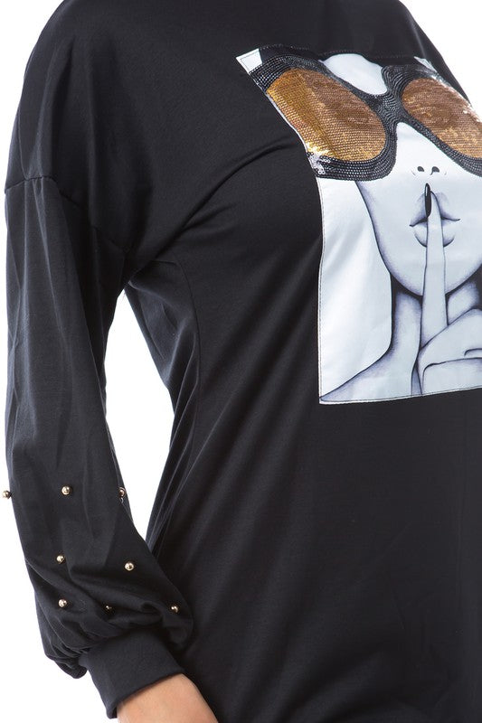 Sexy long maxi hoodies dress ,round neck, long sleeves with pear design