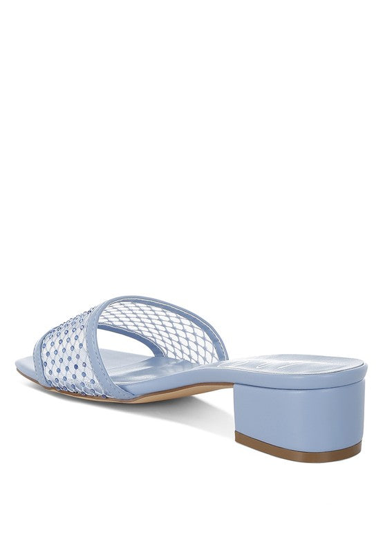 Crafted from rhinestone-studded mesh and faux leather, these square-toed heels are a true stunner! Featuring comfortable low-block heels and plush cushioned insoles, they're perfect for parties or brunches. Style these slip-ons with anything from dresses to denim.