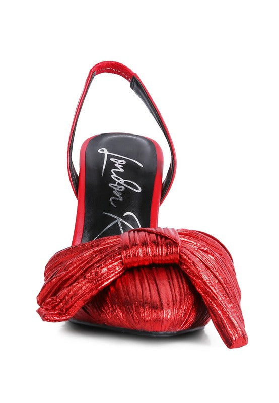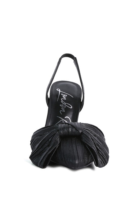The bow detail high-heeed sandals are simply stunning. The soft padded innersole offers comfort and the elasticated slingback helps secure your feet. The sandals are subtly sexy, chic and a must-have!