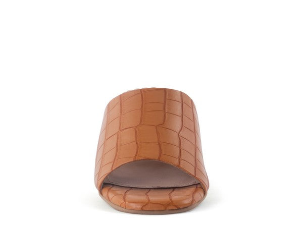 Croc / Nude Pattern Slip-On Sandal - that will be a comfortable pick. Keep it trendy in block heeled sandals from London Rag