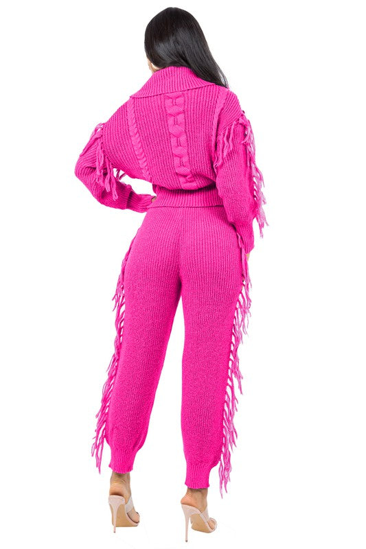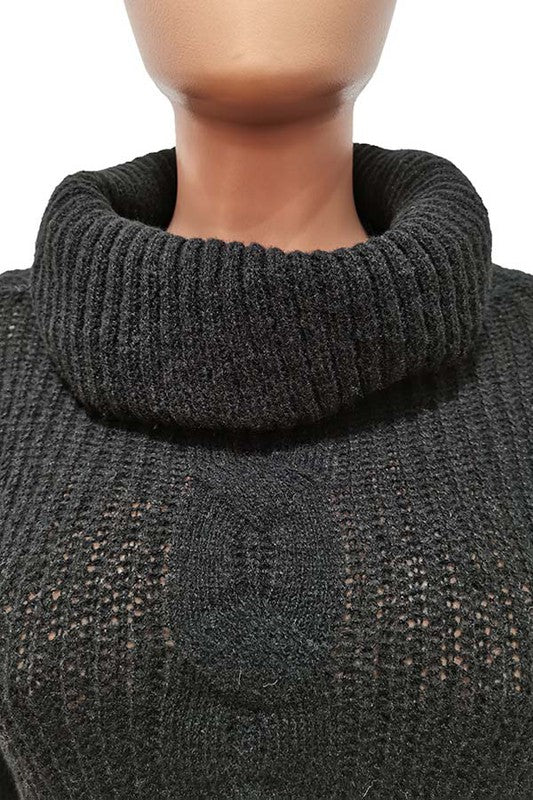 Sexy sweater top long sleeves, high neckline, with ribbed cuffs, elasticized trim waist pants