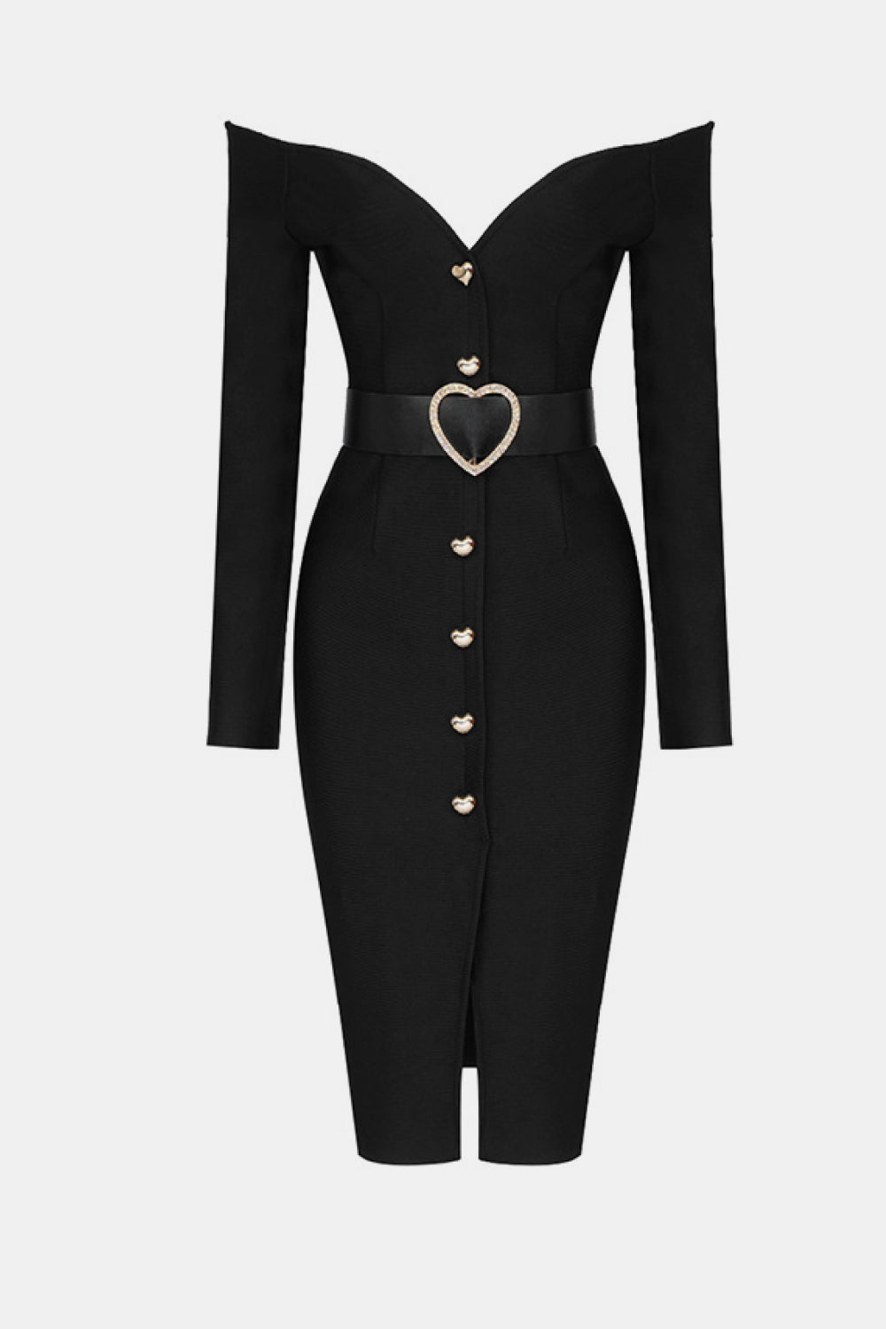 - Features: Long sleeves, button down, belt included, heart-shaped buttons