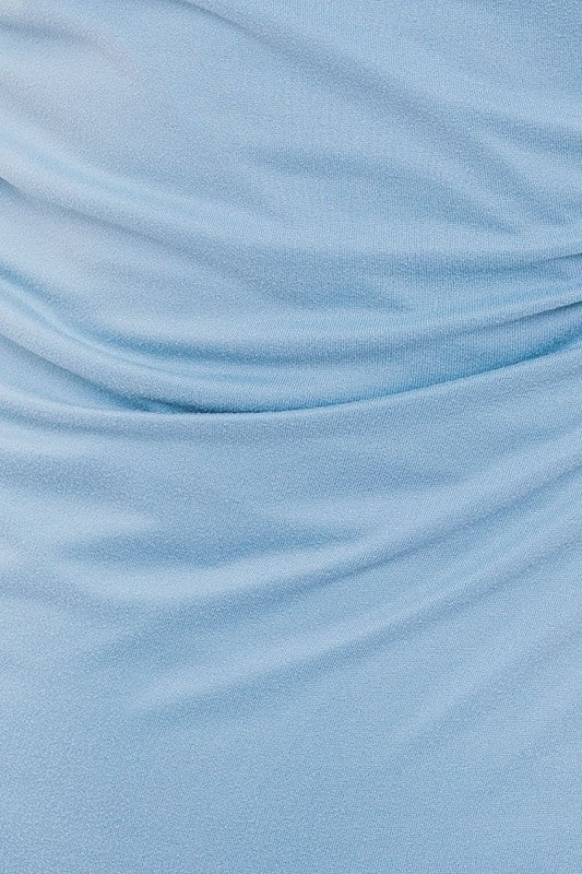 Introducing our One Shoulder Midi Dress, a chic and alluring addition to your wardrobe. This dress features a sophisticated one-shoulder design that exudes elegance and style. The side cutout adds a touch of sultry charm, revealing a glimpse of skin in a tasteful manner. The ruched detailing enhances your figure and creates a flattering silhouette. To top it off, a side slit adds a touch of allure and ease of movement.