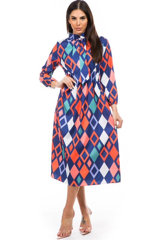 Sexy maxi dress, long sleeves, V-neck with strap, elasticized waist.