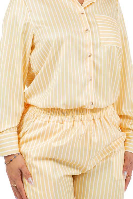 Sexy 2pcs set, long sleeves, front button, elasticized waist short