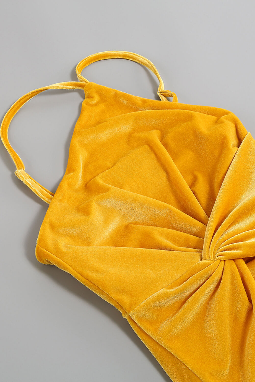 Velvet Twisted Asymmetrical Fringe Hem Dress